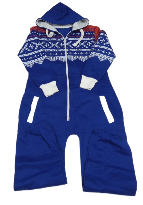 Zafírová tepláková kombinéza so vzorom a kapucňou