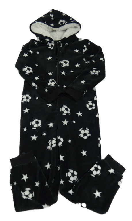Čierna chlpatá kombinéza s loptami a kapucňou Peacocks