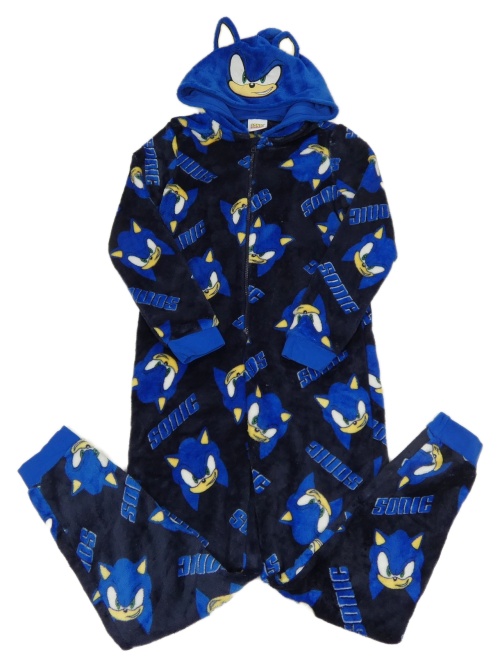 Tmavomodro-modrá chlpatá kombinéza s kapucí - Sonic