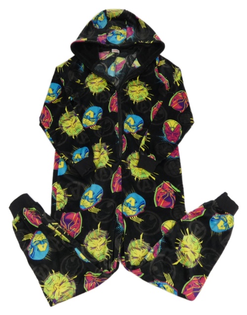 Čierna plyšová kombinéza s Avengers a kapucňou MARVEL
