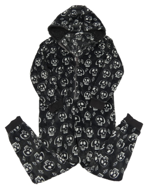 Tmavosivá plyšová kombinéza s lebkami a kapucňou M&S