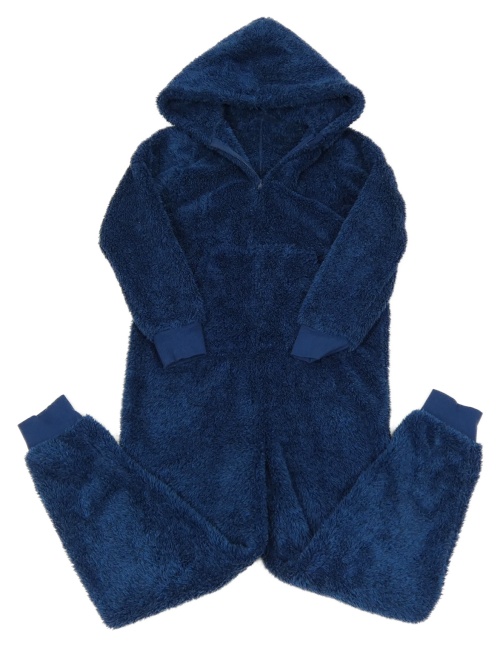 Modro-tmavomodrá melírovaná chlpatá kombinéza s kapucňou Matalan