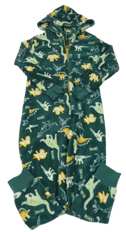 Zelená chlpatá kombinéza s dinosaurami a kapucňou