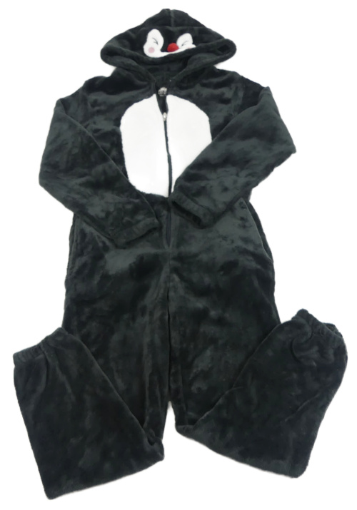 Antracitovo-biela chlpatá kombinéza s kapucí - tučňák
