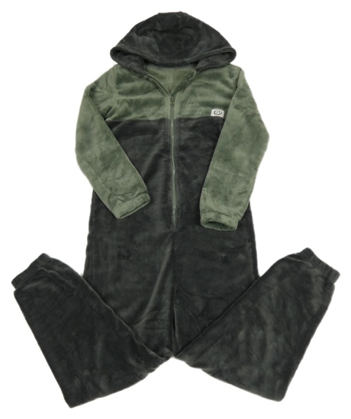 Šedo-khaki chlpatá kombinéza so smajlíkom a kapucňou George