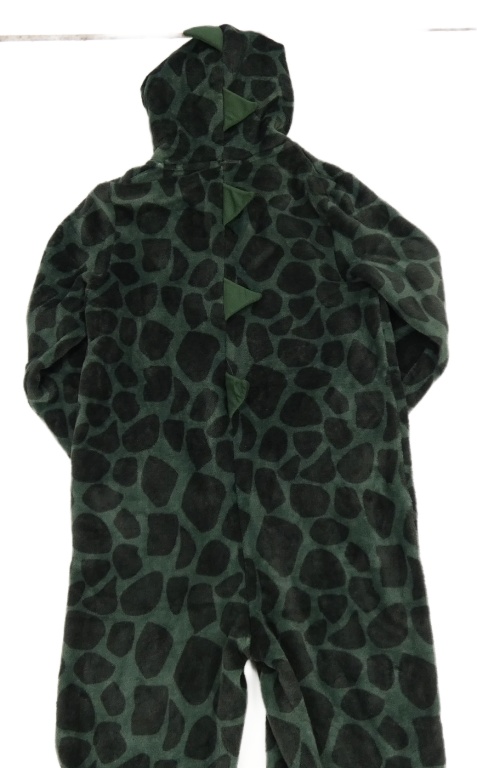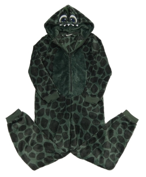 Kaki-čierna vzorovaná chlpatá kombinéza s kapucí - dinosaurus
