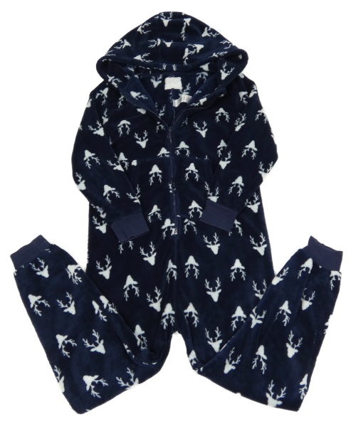 Tmavomodrá chlpatá kombinéza s jeleňmi a kapucňou Next