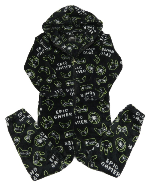 Čierna chlpatá kombinéza s ovladači a kapucňou