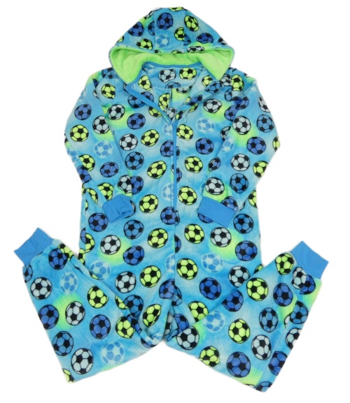Světlemodro-zelená plyšová kombinéza s loptami a kapucňou Dunnes Stores