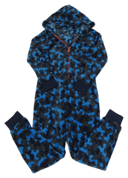 Tmavomodro-sivá vzorovaná plyšová kombinéza s kapucňou 9th Avenue