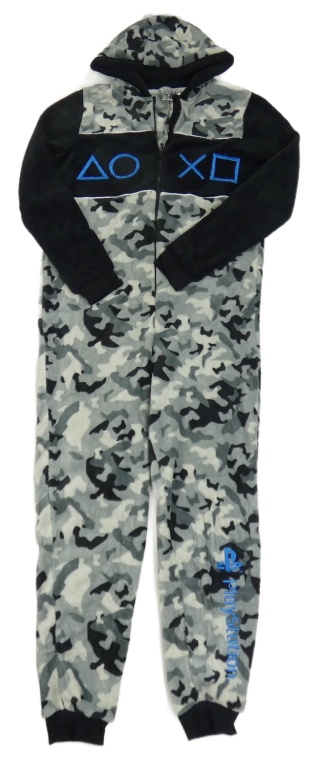 Sivo-čierna army chlpatá kombinéza s logem Playstation a kapucňou