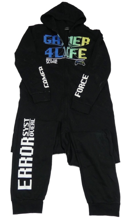 Čierna tepláková kombinéza s nápismi a ovladačem a kapucňou Chapter young