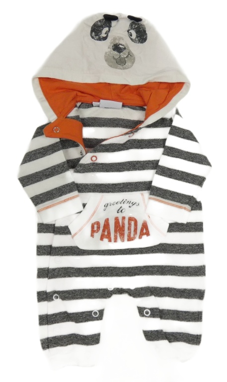Bielo-tmavosivá pruhovaná tepláková kombinéza s kapucí - panda Primigi