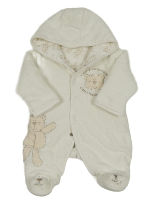 Biela fleecová zateplená kombinéza s medveďmi a kapucňou Bhs