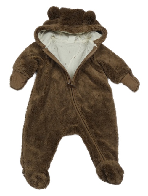 Hnedá chlpatá podšitá kombinéza s kapucňou s uškami H&M