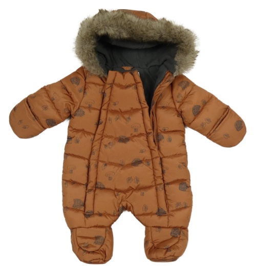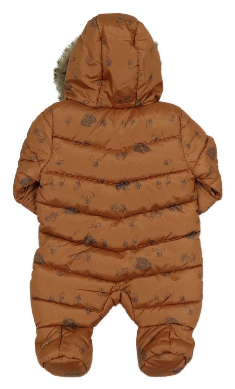 Hnedá šušťáková zateplená kombinéza s ježkami a kapucňou s kožešinou Primark