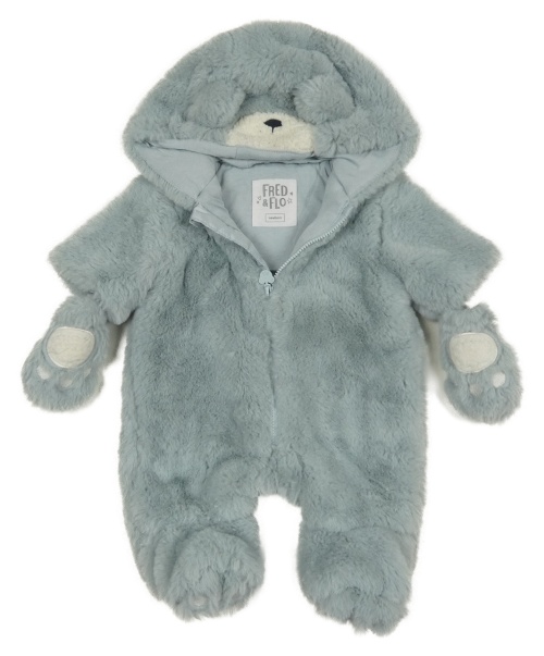 Světlemodrošedá kožušinová podšitá kombinéza s kapucí - medvedík F&F