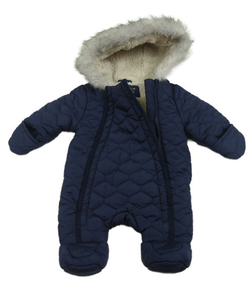 Tmavomodrá šušťáková prešívaná zimná kombinéza s kapucňou Primark