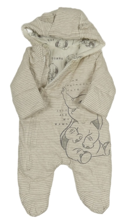 Béžovo-biela pruhovaná bavlnená zateplená kombinéza s Dumbem a kapucňou George