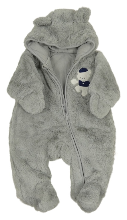 Sivá kožušinová zateplená kombinéza s medvedíkom a kapucňou Leerjia