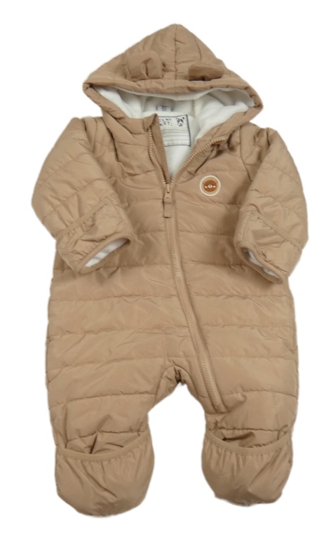 Béžová šušťáková zimná kombinéza s medvedíkom a kapucňou Dopodopo