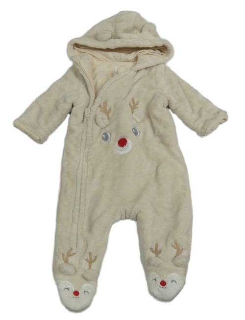 Svetlobéžová chlpatá podšitá kombinéza so sobom a kapucňou C&A