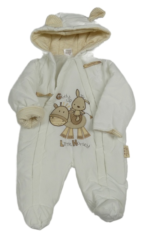 Smotanová šušťáková zateplená kombinéza so zvířaty a kapucňou