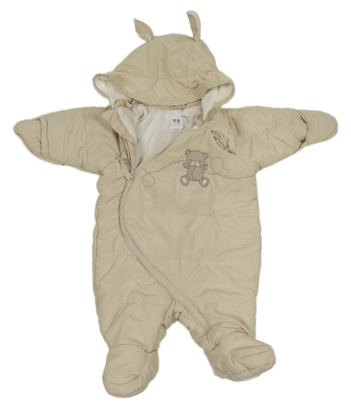 Svetlobéžová šušťáková zimná kombinéza s medvedíkom a kapucňou H&M