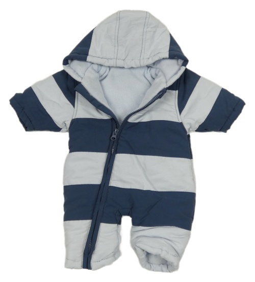 Tmavomodro-svetlomodrá pruhovaná šušťáková zimná kombinéza s kapucňou Mothercare