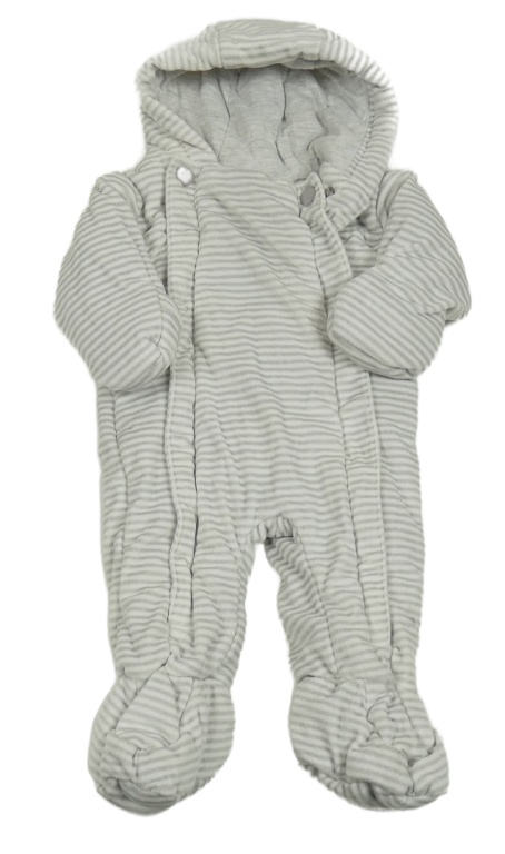 Sivo-biela pruhovaná plyšová zateplená kombinéza s kapucňou M&S