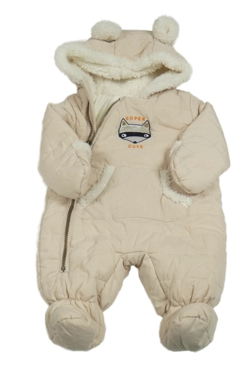 Smotanová šušťáková zimná kombinéza s obrázkom a kapucňou