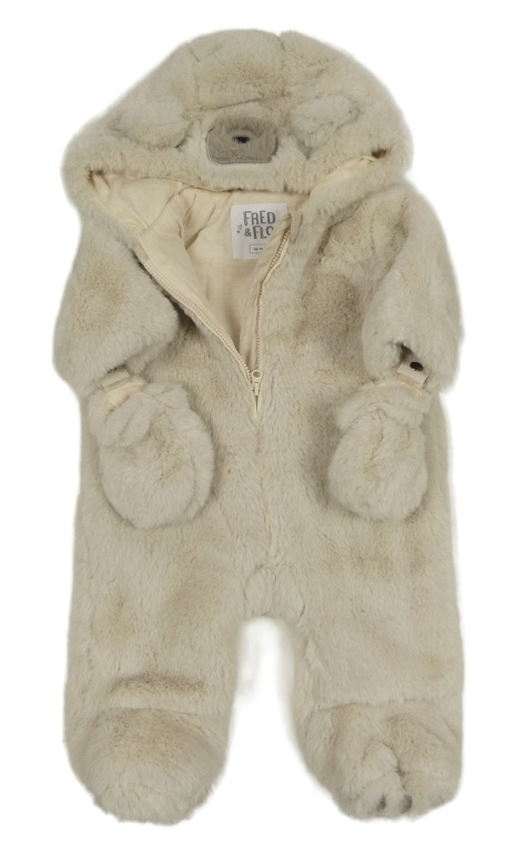 Svetlobéžová chlpatá zateplená kombinéza s kapucí + rukavice F&F