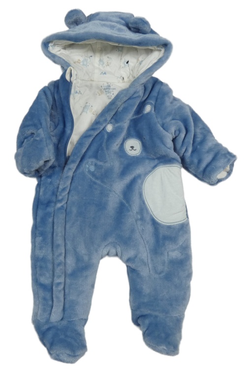 Modrá chlpatá zateplená kombinéza s medvěďom a kapucňou Mothercare
