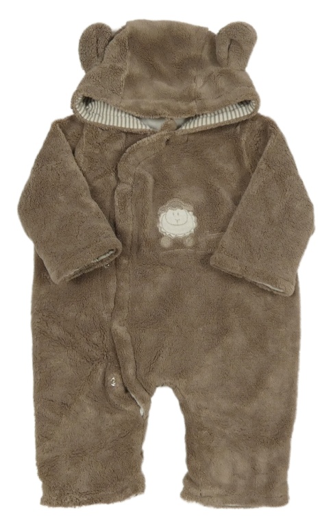 Hnedá chlpatá podšitá kombinéza s ovečkou a kapucňou