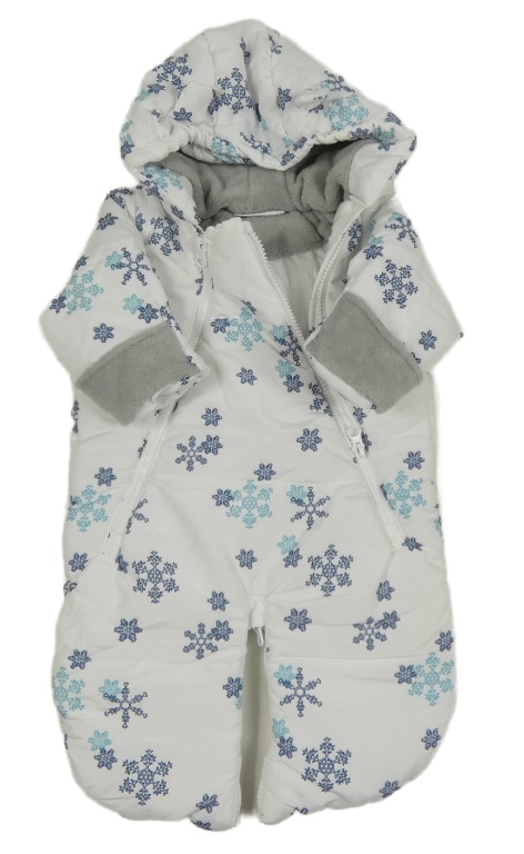 Bílá šusťáková zimní kombinéza/fusak s vločkami a kapucňou Ergee