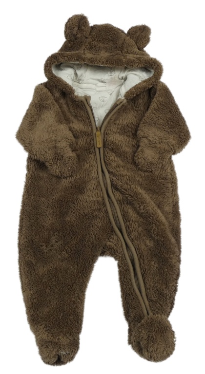Hnedá chlpatá podšitá kombinéza s kapucňou s uškami H&M
