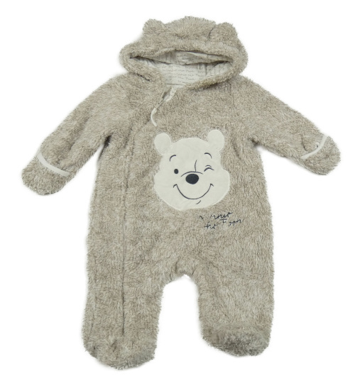 Béžovo-biela chlpatá kombinéza s medvedíkom a kapucňou Disney