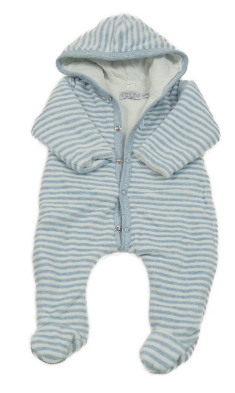 Modro-biela pruhovaná zamatová zateplená kombinéza s kapucňou Dirkje