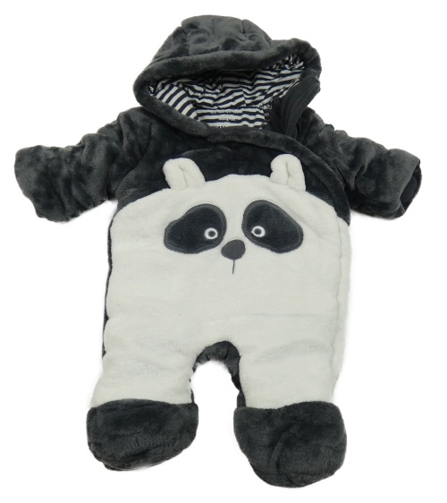 Tmavošedo-biela plyšová zateplená kombinéza s pandou a kapucňou F&F