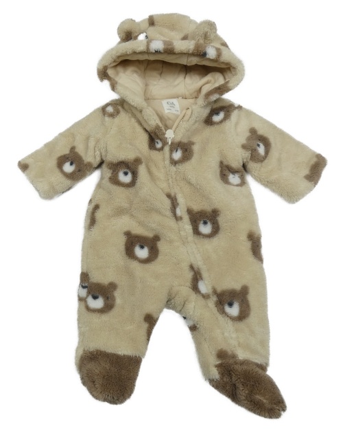Béžová chlpatá zateplená kombinéza s medvedíkmi a kapucňou C&A