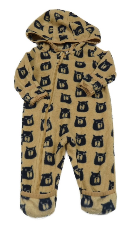 Béžová fleecová kombinéza s medveďmi a kapucňou