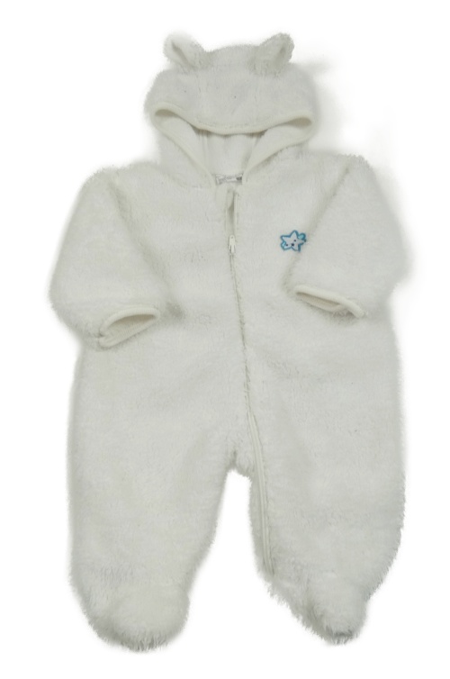 Biela chlpatá kombinéza s hviezdou a kapucňou Ergee