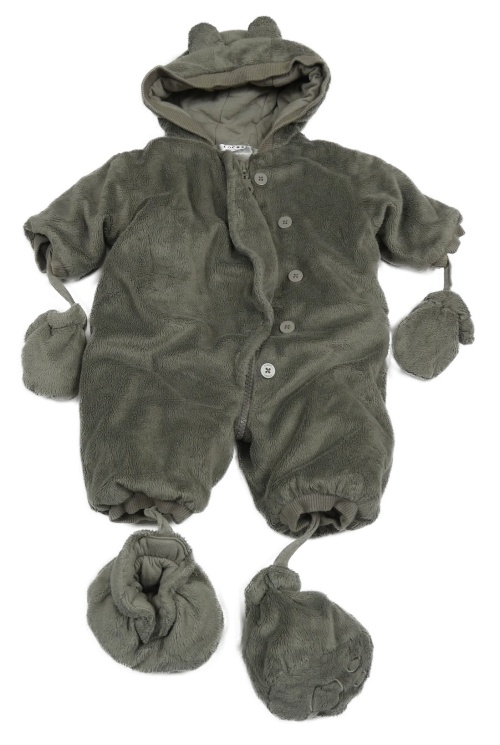 Tmavosivá chlpatá zateplená kombinéza s kapucí + capáčky + rukavice LaRedoute
