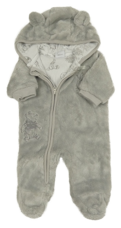 Sivá plyšová podšitá kombinéza s Púem a kapucňou Disney