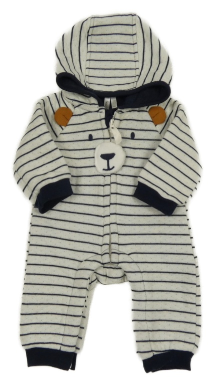 Bielo-tmavomodrá pruhovaná tepláková kombinéza s medvěďom a kapucňou Orchestra