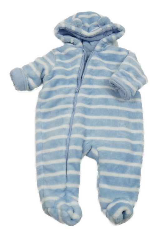 Světlemodro-biela pruhovaná chlpatá zateplená kombinéza s kapucňou Nutmeg
