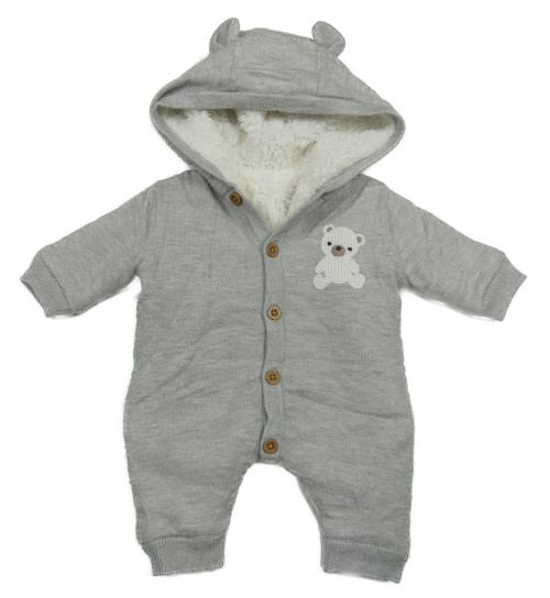 Sivá pletená zateplená kombinéza s medvěďom a kapucňou Little nutmeg