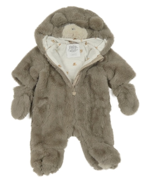 Sivá kožušinová podšitá kombinéza s kapucí + rukavice F&F