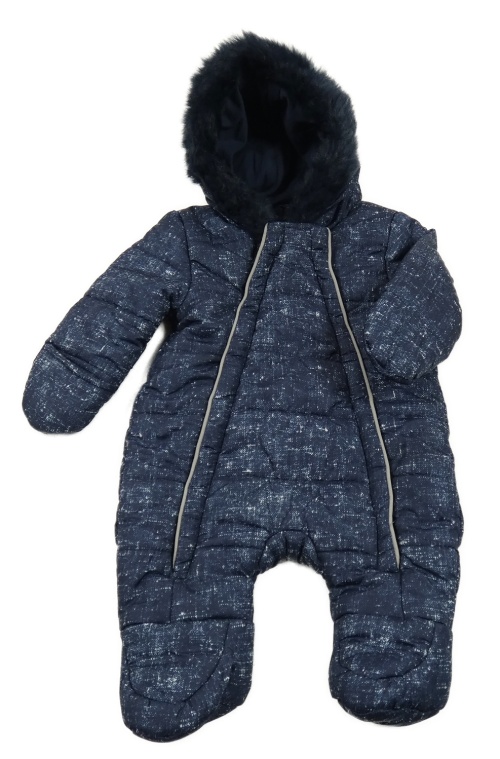 Tmavomodrá melírovaná šušťáková zimná kombinéza s kapucňou Primark
