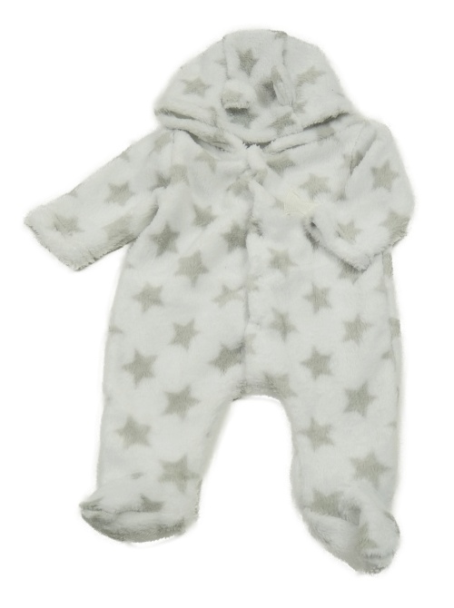 Biela chlpatá kombinéza s hviezdami a kapucňou